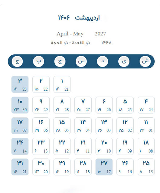 تقویم اردیبهشت ۱۴۰۶ – تقویم برج دو ۱۴۰۶