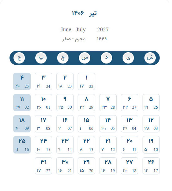 تقویم تیر ۱۴۰۶ – تقویم برج چهار ۱۴۰۶