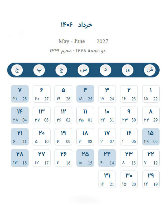 تقویم خرداد ۱۴۰۶ – تقویم برج سه ۱۴۰۶