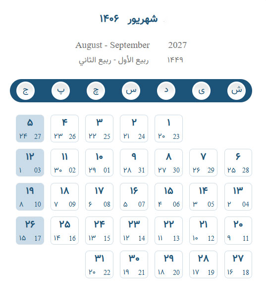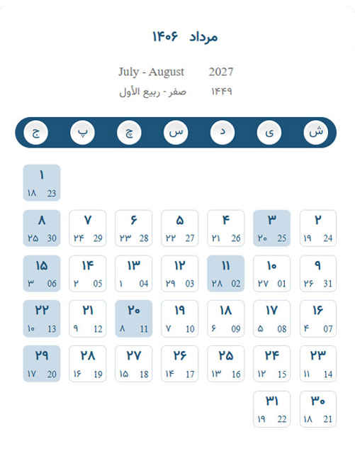 تقویم مرداد ۱۴۰۶ – تقویم برج پنجم ۱۴۰۶