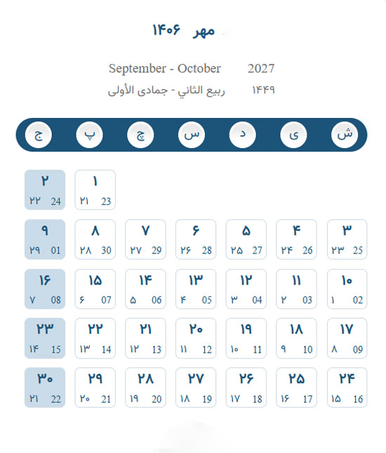 تقویم مهر ۱۴۰۶ – تقویم برج هفتم ۱۴۰۶